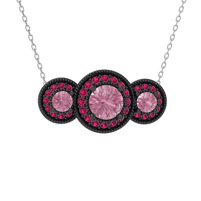 Pembe kuvars ve rodolit garnet 925 ayar siyah rodyum kaplama gümüş kolye (40 cm beyaz altın rolo zincir)