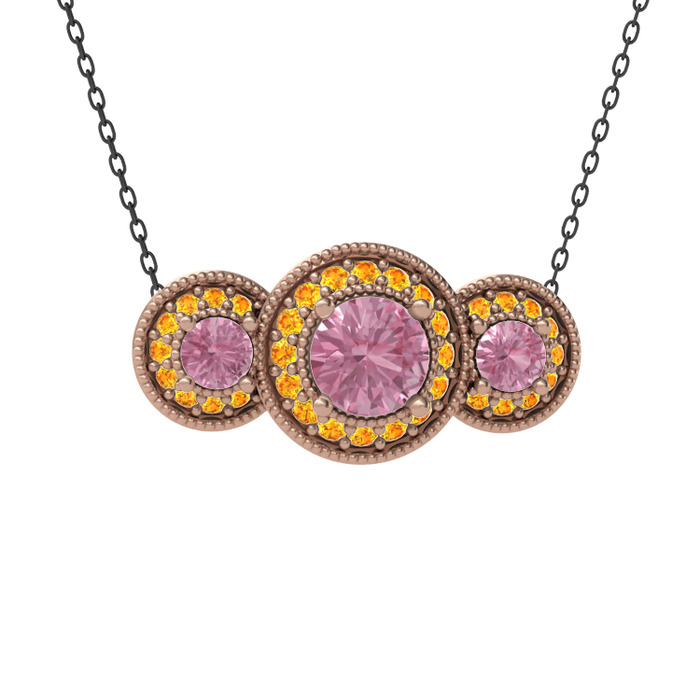 Pembe kuvars ve sitrin 14 ayar rose altın kolye (40 cm gümüş rolo zincir)