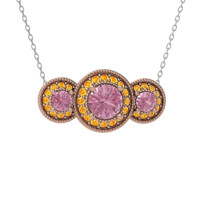 Pembe kuvars ve sitrin 8 ayar rose altın kolye (40 cm beyaz altın rolo zincir)
