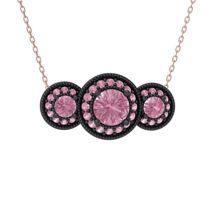 Pembe kuvars 925 ayar siyah rodyum kaplama gümüş kolye (40 cm rose altın rolo zincir)