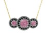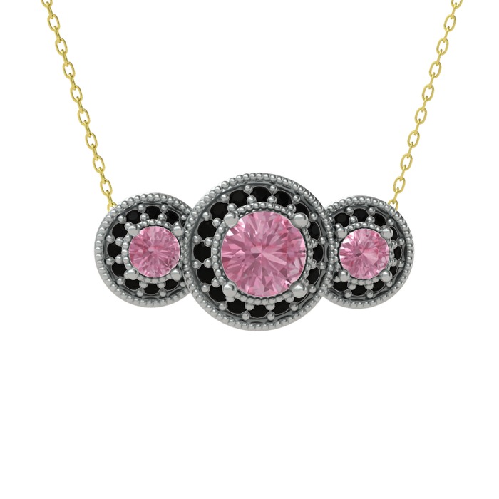 Pembe kuvars ve siyah zirkon 8 ayar beyaz altın kolye (40 cm altın rolo zincir)