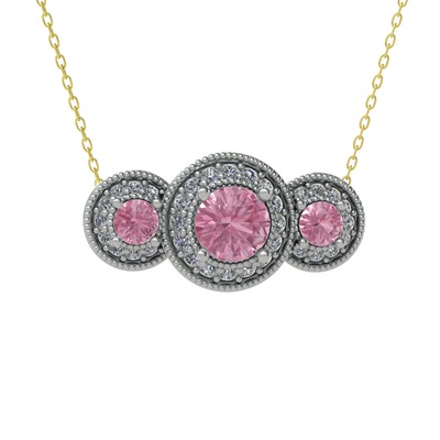 Pembe kuvars ve swarovski 18 ayar beyaz altın kolye (40 cm gümüş rolo zincir)