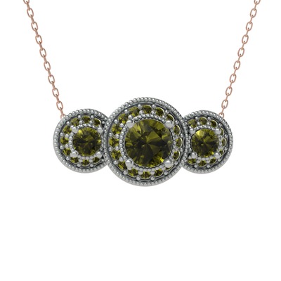 Peridot 14 ayar beyaz altın kolye (40 cm rose altın rolo zincir)