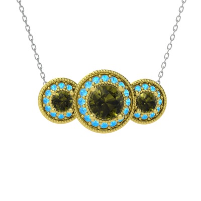 Peridot ve akuamarin 925 ayar altın kaplama gümüş kolye (40 cm gümüş rolo zincir)