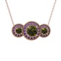 Peridot ve ametist 8 ayar rose altın kolye (40 cm gümüş rolo zincir)