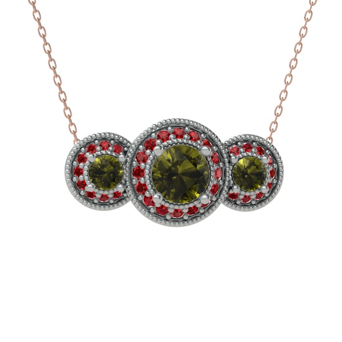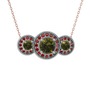 Peridot ve garnet 925 ayar gümüş kolye (40 cm rose altın rolo zincir)