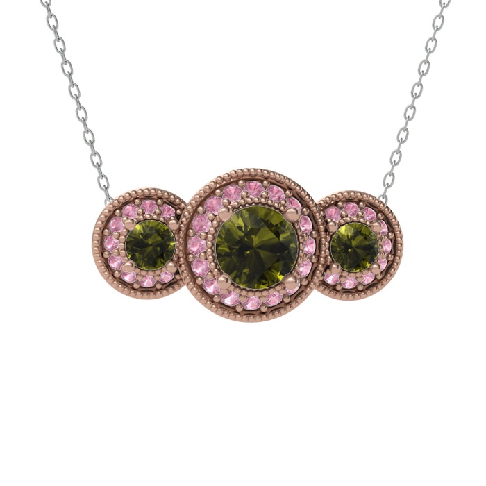 Peridot ve pembe kuvars 18 ayar rose altın kolye (40 cm beyaz altın rolo zincir)