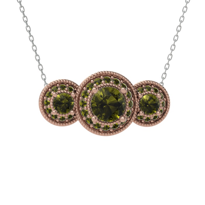 Peridot 925 ayar rose altın kaplama gümüş kolye (40 cm gümüş rolo zincir)