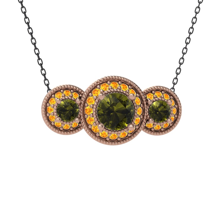Peridot ve sitrin 18 ayar rose altın kolye (40 cm gümüş rolo zincir)
