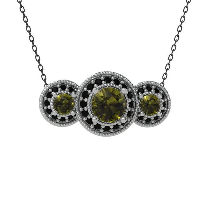 Peridot ve siyah zirkon 8 ayar beyaz altın kolye (40 cm gümüş rolo zincir)