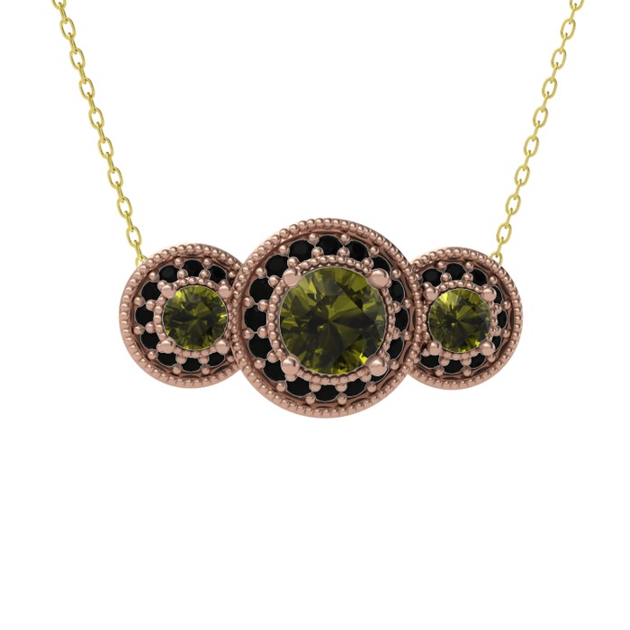 Peridot ve siyah zirkon 8 ayar rose altın kolye (40 cm gümüş rolo zincir)