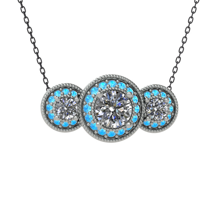 Pırlanta ve akuamarin 18 ayar beyaz altın kolye (1.5 karat, 40 cm gümüş rolo zincir)