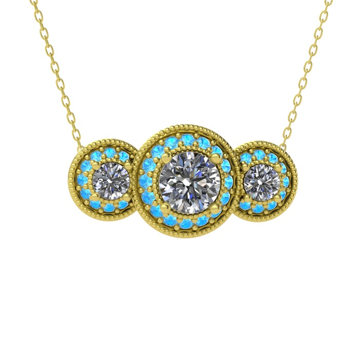 Pırlanta ve akuamarin 8 ayar altın kolye (1.5 karat, 40 cm gümüş rolo zincir)