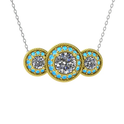 Pırlanta ve akuamarin 925 ayar altın kaplama gümüş kolye (1.5 karat, 40 cm gümüş rolo zincir)