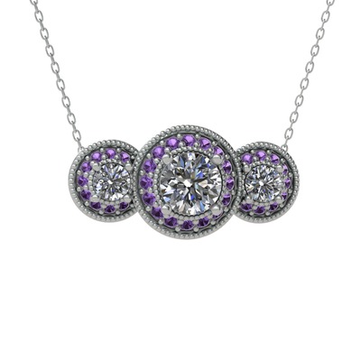 Pırlanta ve ametist 18 ayar beyaz altın kolye (1.5 karat, 40 cm beyaz altın rolo zincir)