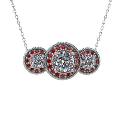 Pırlanta ve garnet 925 ayar gümüş kolye (1.5 karat, 40 cm beyaz altın rolo zincir)