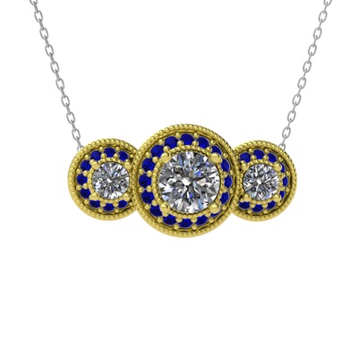 Pırlanta ve lab safir 925 ayar altın kaplama gümüş kolye (1.5 karat, 40 cm gümüş rolo zincir)