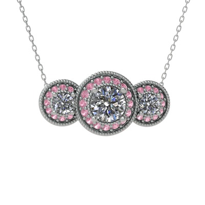 Pırlanta ve pembe kuvars 8 ayar beyaz altın kolye (1.5 karat, 40 cm beyaz altın rolo zincir)