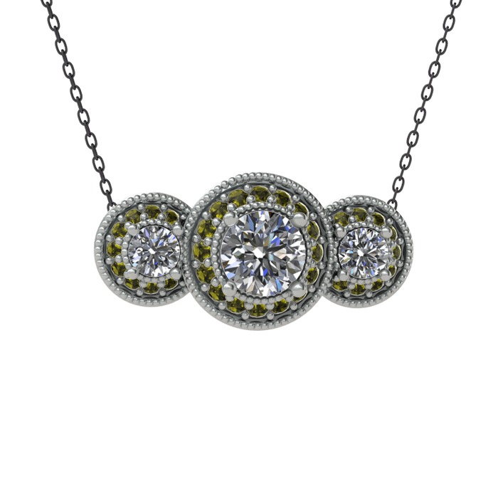 Pırlanta ve peridot 14 ayar beyaz altın kolye (1.5 karat, 40 cm gümüş rolo zincir)