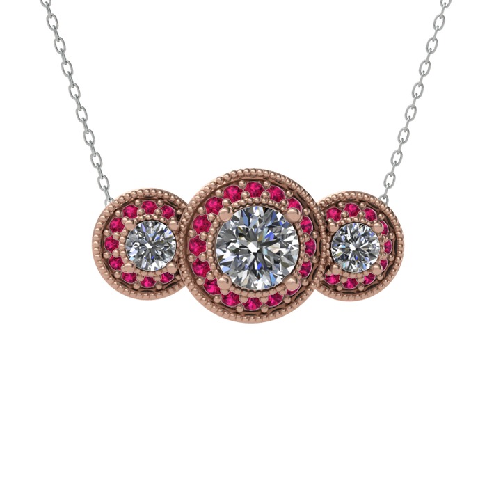 Pırlanta ve rodolit garnet 14 ayar rose altın kolye (1.5 karat, 40 cm beyaz altın rolo zincir)