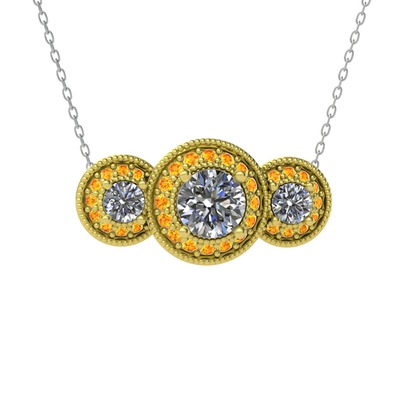Pırlanta ve sitrin 8 ayar altın kolye (1.5 karat, 40 cm gümüş rolo zincir)