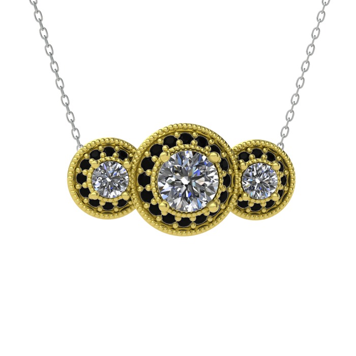 Pırlanta ve siyah zirkon 8 ayar altın kolye (1.5 karat, 40 cm gümüş rolo zincir)