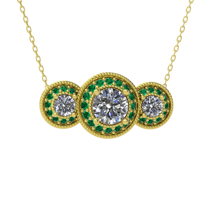 Pırlanta ve yeşil kuvars 18 ayar altın kolye (1.5 karat, 40 cm gümüş rolo zincir)