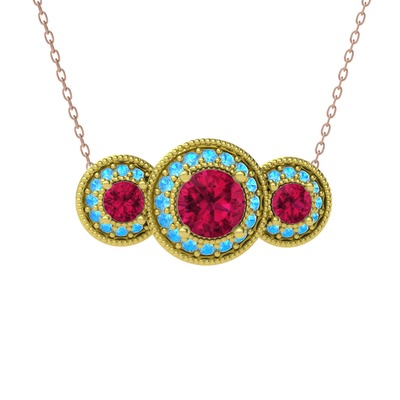 Rodolit garnet ve akuamarin 925 ayar altın kaplama gümüş kolye (40 cm rose altın rolo zincir)
