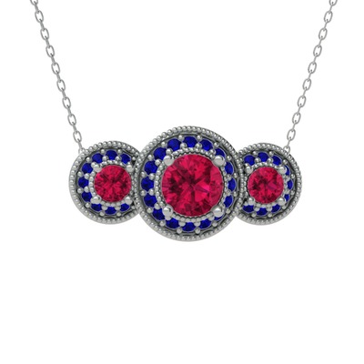 Rodolit garnet ve lab safir 14 ayar beyaz altın kolye (40 cm gümüş rolo zincir)
