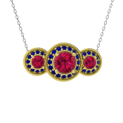 Rodolit garnet ve lab safir 925 ayar altın kaplama gümüş kolye (40 cm gümüş rolo zincir)
