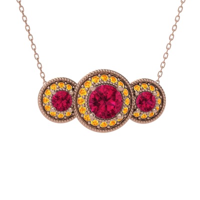 Rodolit garnet ve sitrin 925 ayar rose altın kaplama gümüş kolye (40 cm rose altın rolo zincir)