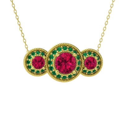 Rodolit garnet ve yeşil kuvars 14 ayar altın kolye (40 cm gümüş rolo zincir)