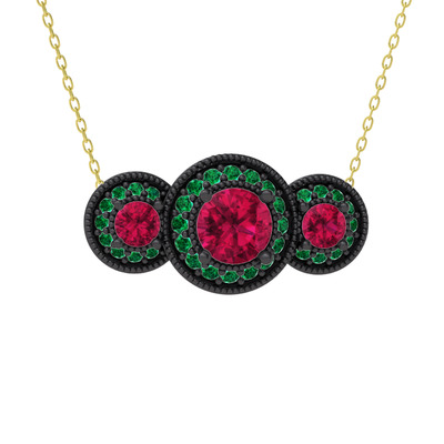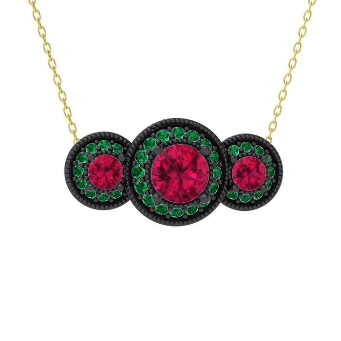 Rodolit garnet ve yeşil kuvars 925 ayar siyah rodyum kaplama gümüş kolye (40 cm altın rolo zincir)