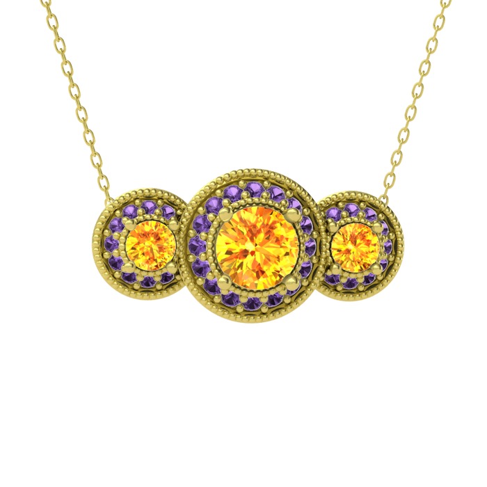 Sitrin ve ametist 14 ayar altın kolye (40 cm gümüş rolo zincir)