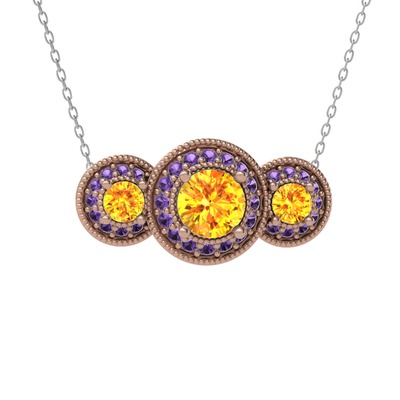 Sitrin ve ametist 8 ayar rose altın kolye (40 cm gümüş rolo zincir)