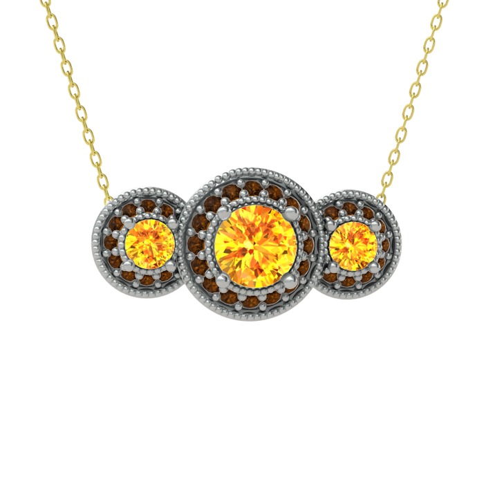 Sitrin ve dumanlı kuvars 18 ayar beyaz altın kolye (40 cm gümüş rolo zincir)