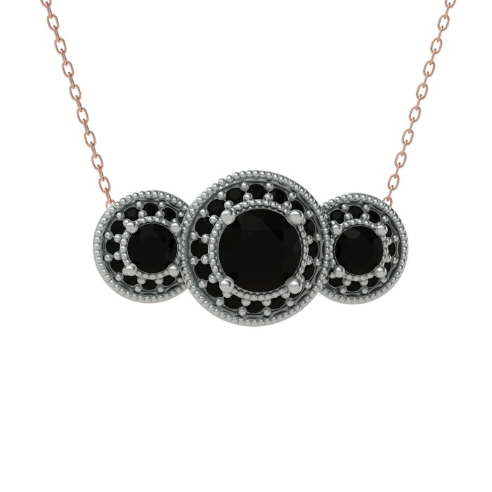 Siyah zirkon 18 ayar beyaz altın kolye (40 cm rose altın rolo zincir)