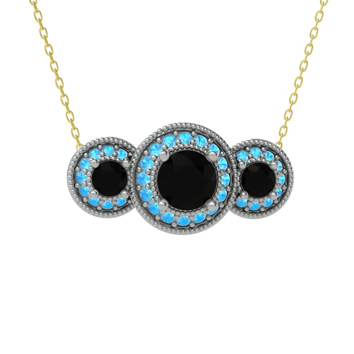Siyah zirkon ve akuamarin 8 ayar beyaz altın kolye (40 cm altın rolo zincir)