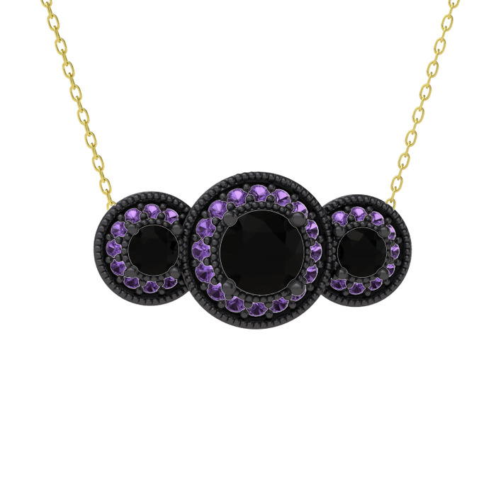 Siyah zirkon ve ametist 925 ayar siyah rodyum kaplama gümüş kolye (40 cm gümüş rolo zincir)