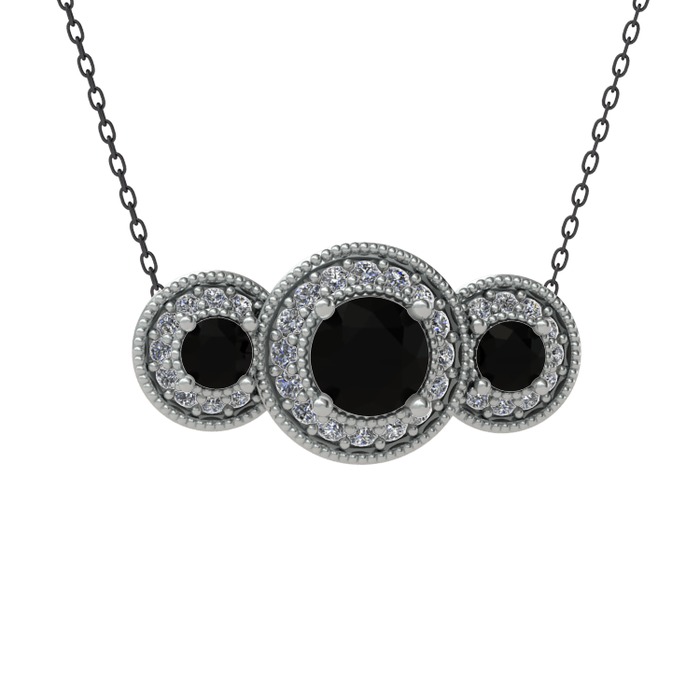 Siyah zirkon ve beyaz zirkon 18 ayar beyaz altın kolye (40 cm gümüş rolo zincir)