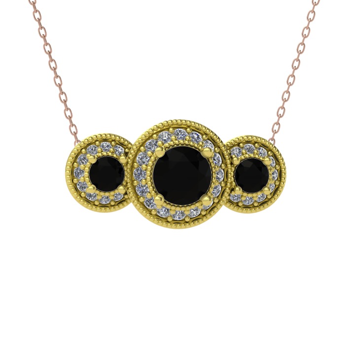 Siyah zirkon ve beyaz zirkon 8 ayar altın kolye (40 cm rose altın rolo zincir)