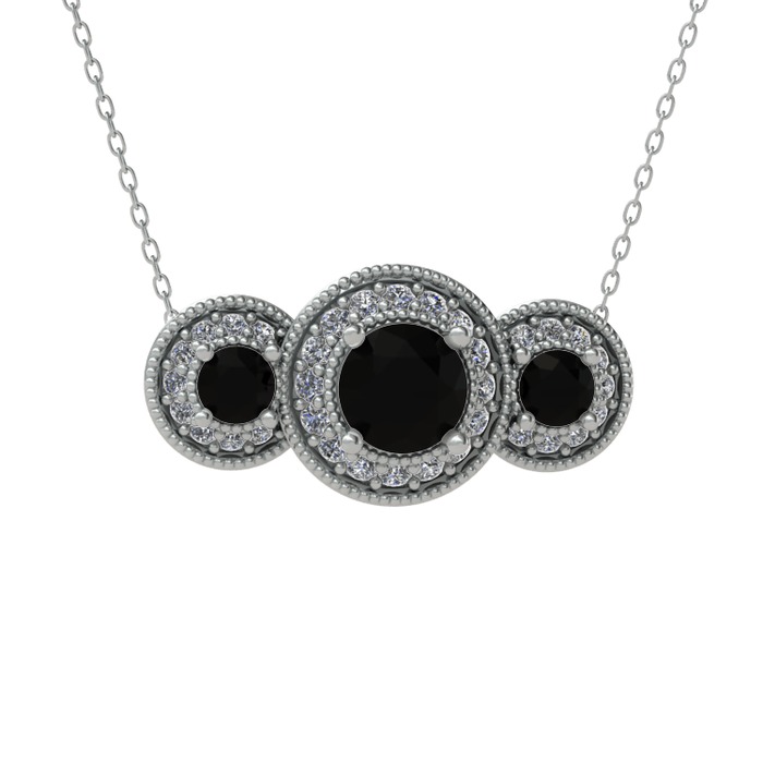 Siyah zirkon ve beyaz zirkon 8 ayar beyaz altın kolye (40 cm beyaz altın rolo zincir)