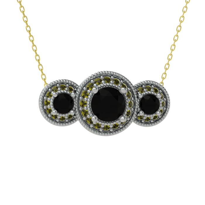 Siyah zirkon ve peridot 925 ayar gümüş kolye (40 cm gümüş rolo zincir)