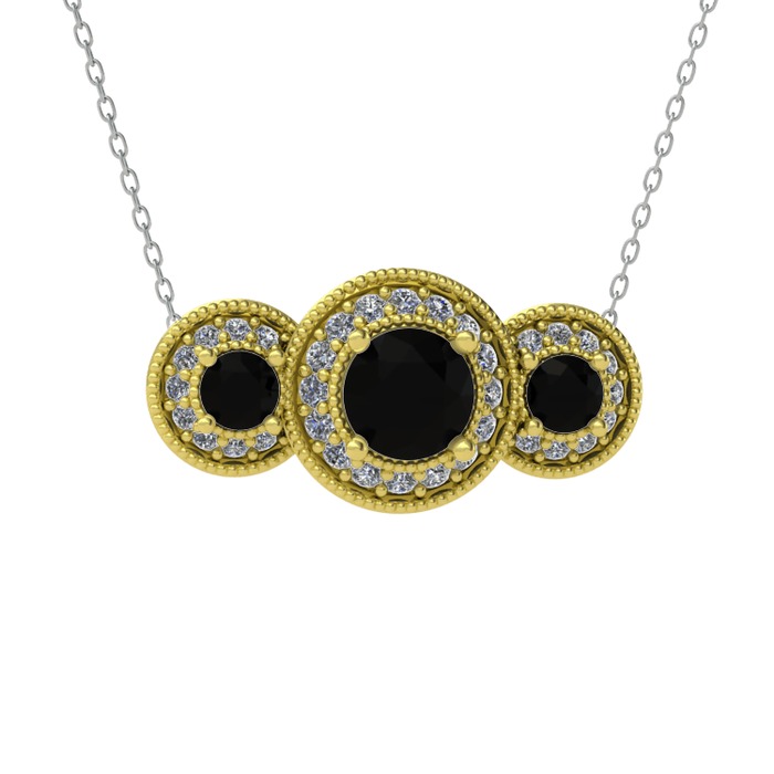 Siyah zirkon ve pırlanta 925 ayar altın kaplama gümüş kolye (0.462 karat, 40 cm gümüş rolo zincir)