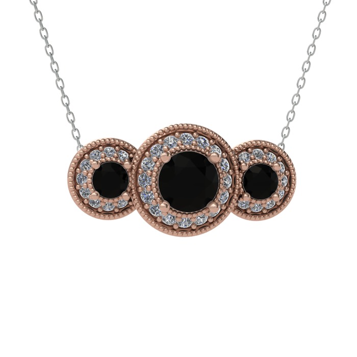 Siyah zirkon ve pırlanta 925 ayar rose altın kaplama gümüş kolye (0.462 karat, 40 cm beyaz altın rolo zincir)