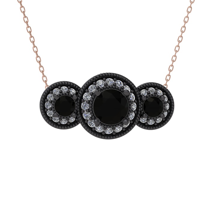 Siyah zirkon ve pırlanta 925 ayar siyah rodyum kaplama gümüş kolye (0.462 karat, 40 cm rose altın rolo zincir)