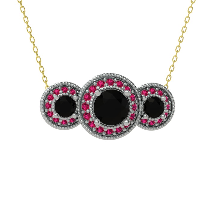 Siyah zirkon ve rodolit garnet 14 ayar beyaz altın kolye (40 cm gümüş rolo zincir)