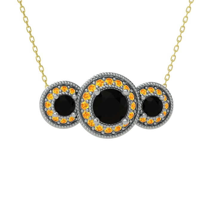 Siyah zirkon ve sitrin 8 ayar beyaz altın kolye (40 cm gümüş rolo zincir)