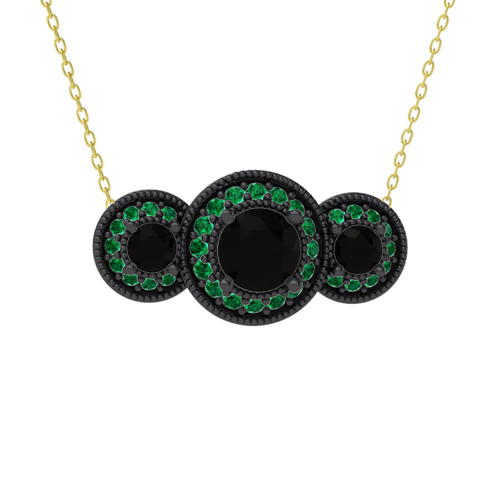 Siyah zirkon ve yeşil kuvars 925 ayar siyah rodyum kaplama gümüş kolye (40 cm altın rolo zincir)