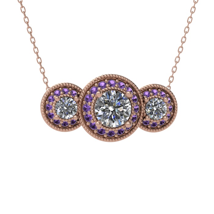 Swarovski ve ametist 14 ayar rose altın kolye (40 cm rose altın rolo zincir)
